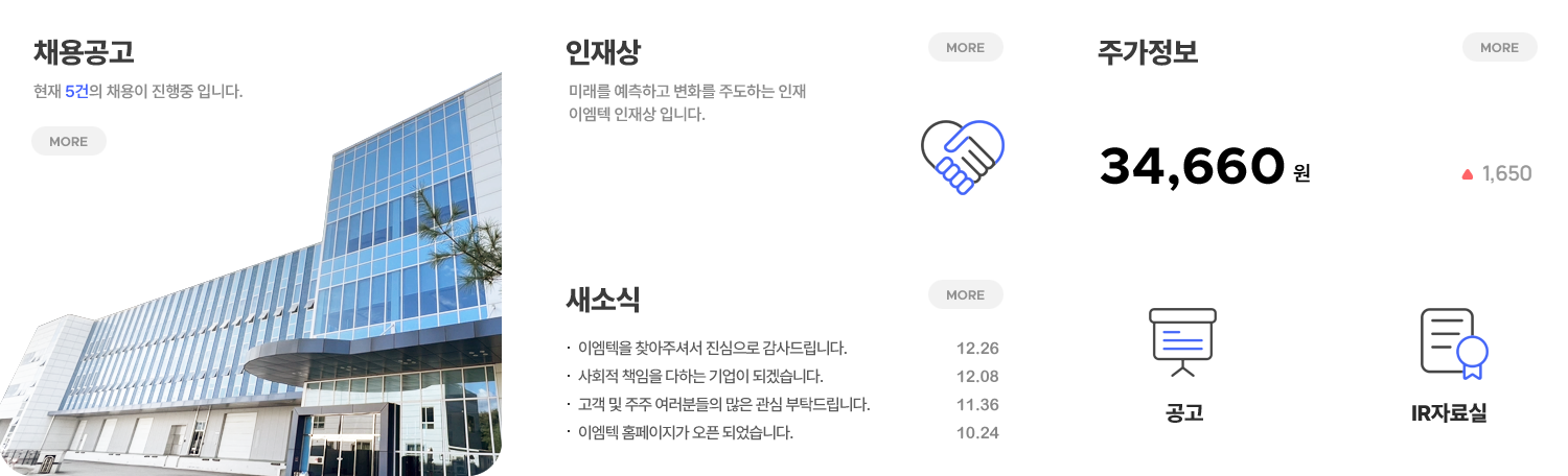 이엠텍은 Mobile 주변기기, 전장, 게임기, 가전제품 등 다양한